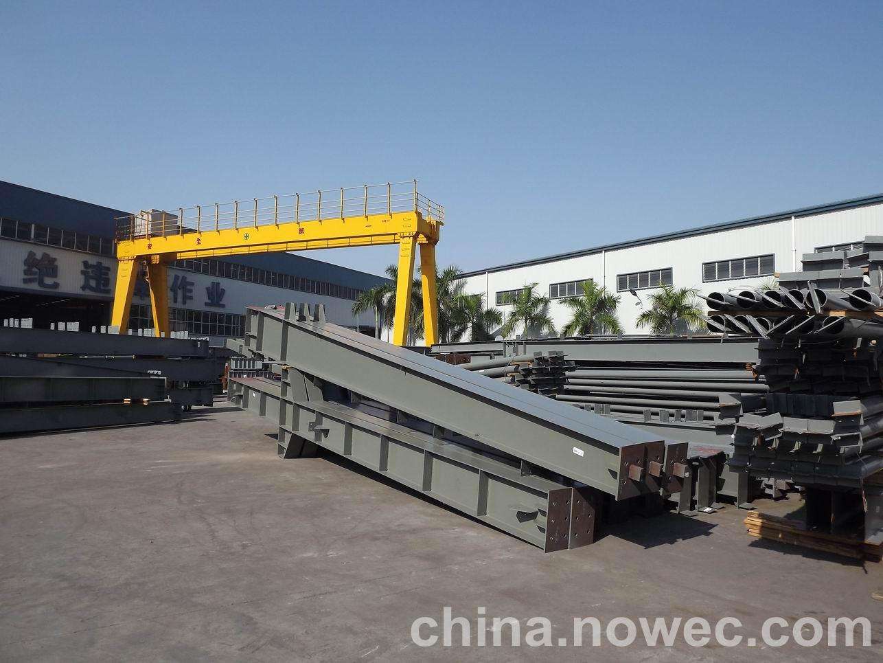 条状单元一般沿长跨方向分割,其宽度约为1~3个网格,其长度为l2或l2/2(l2为短跨跨距)。块状单元一般沿迁安网架平面纵横向分割成矩形或正方形单元。每个单元的重量以现有起重机能胜任为准。条(块)与条(块)之间可以直接拼装,也可空一网格在高空拼装。由于条(块)状单元是在地面拼装,因而高空作业量较高空散装法大为减少,拼装支架也减少很多,又能充分利用现有起重设备,故较经济。这种安装方法适用于分割后网架的钢度和受力状况改变较小的各类中小型网架,如两向正交正放四角锥、正放抽空四角锥等网架。